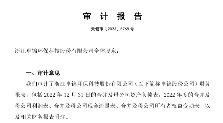浙江卓錦環??萍脊煞萦邢薰?022年度審計報告