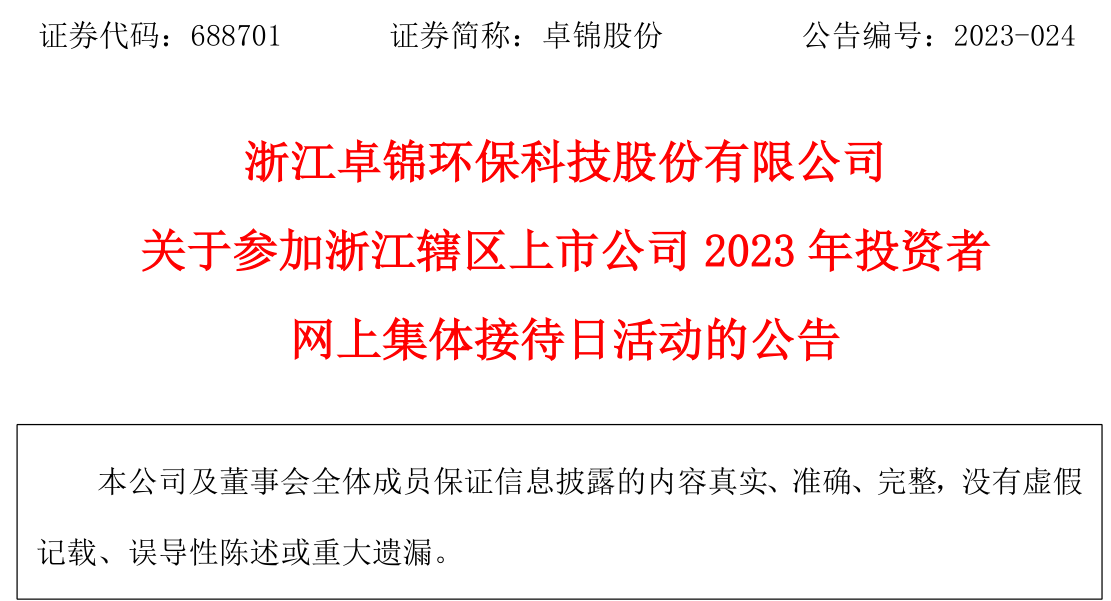 關于參加浙江轄區(qū)上市公司2023年投資者網(wǎng)上集體接待日活動的公告