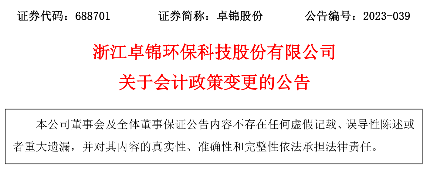 附件:浙江卓錦環(huán)保科技股份有限公司關(guān)于會(huì)計(jì)政策變更的公告