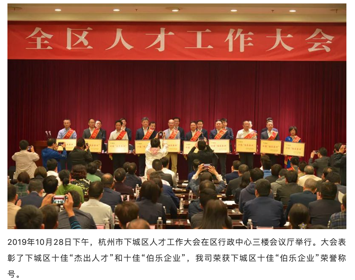 卓錦環保榮獲下城區十佳“伯樂企業”稱號