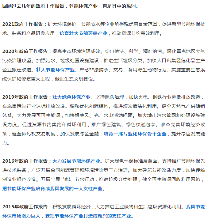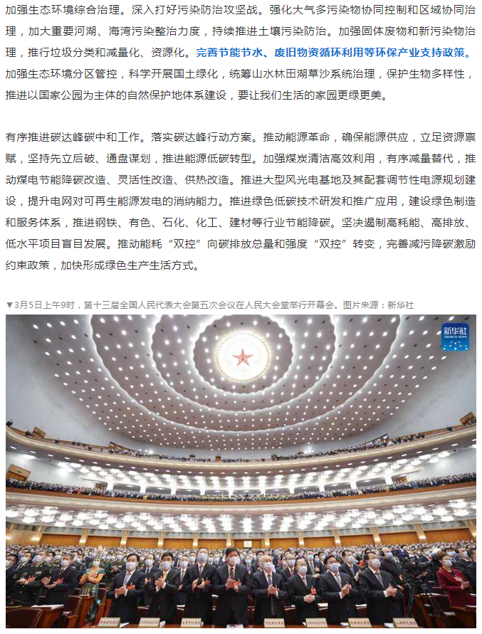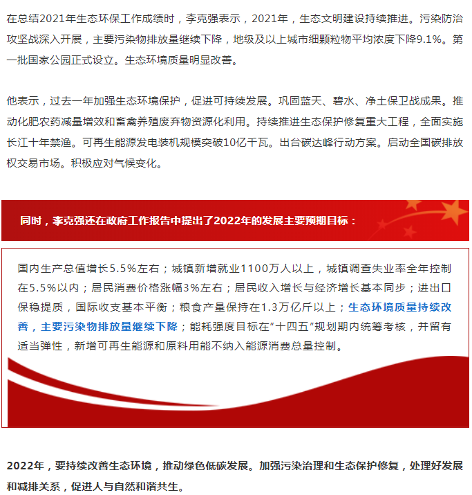 政府工作報告:2022年要完善環保產業支持政策