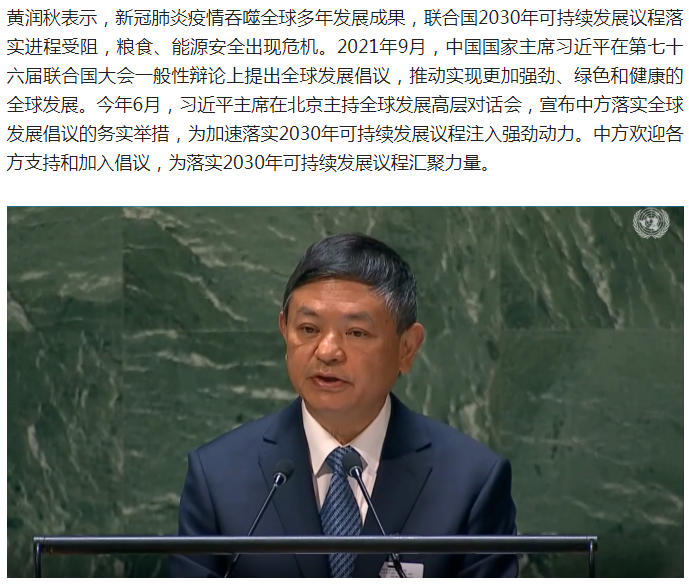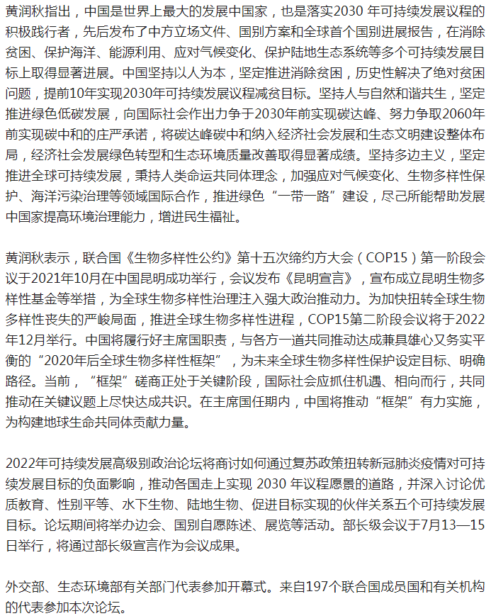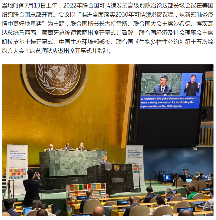 生態(tài)環(huán)境部部長黃潤秋出席2022年聯(lián)合國可持續(xù)發(fā)展高級別政治論壇部長級會議開幕式